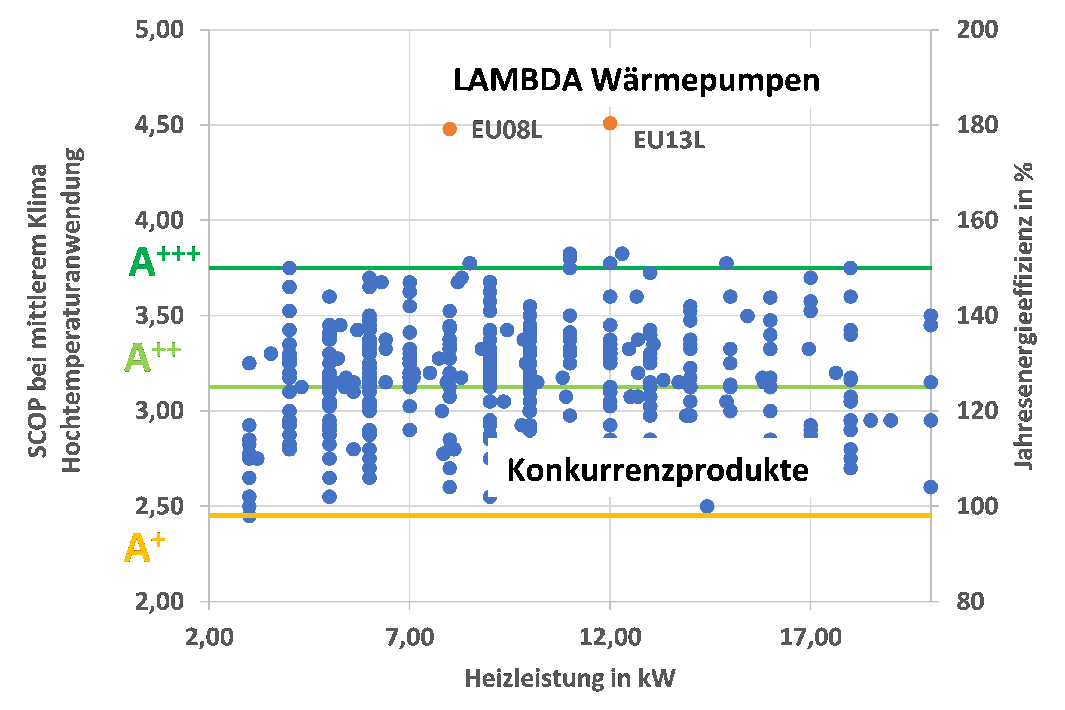Vergleich zu Konurrenzanbietern werden Effizienzwerte erreicht, die